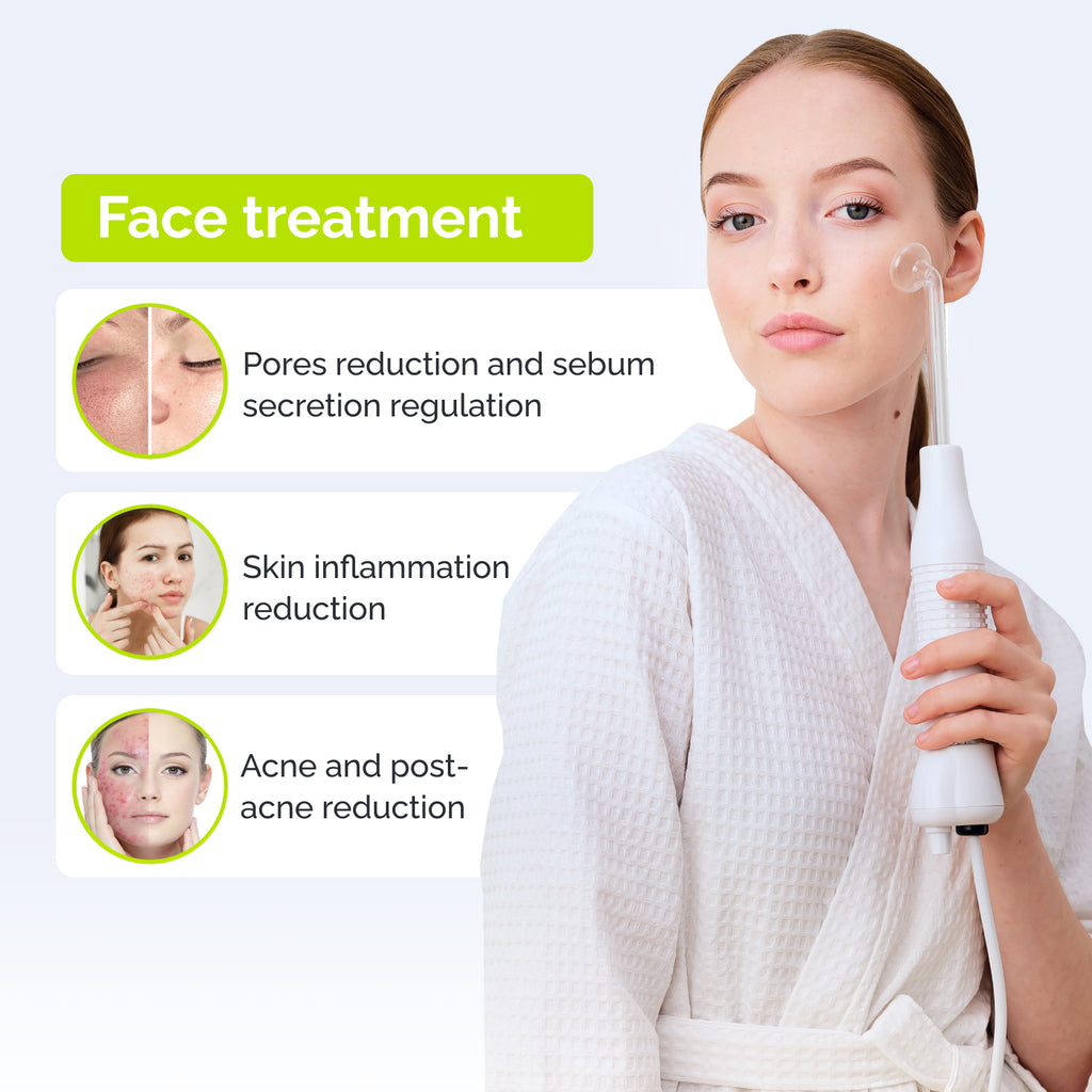- PUNTO (Luz Violeta - Gas Argón): Perfecto para tratar inflamaciones localizadas y acné. Limpia, desinfecta y mejora la apariencia de la piel con imperfecciones.