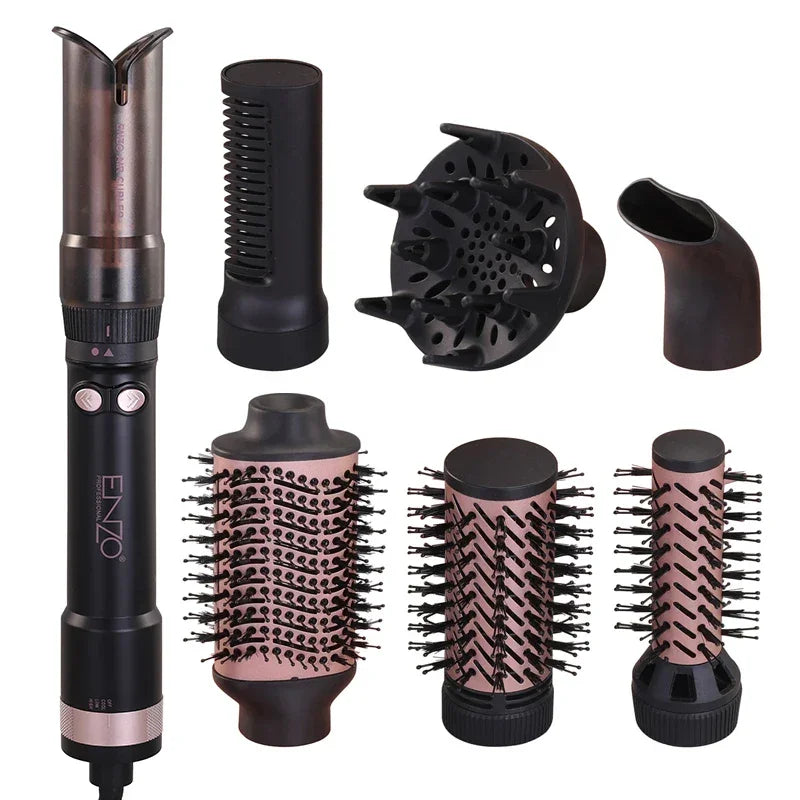7 accesorios en 1: secador, alisador, rizador, cepillo y más en un solo kit
